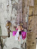 Her wings are paper butterfly wings. She has painted wire arms and legs.